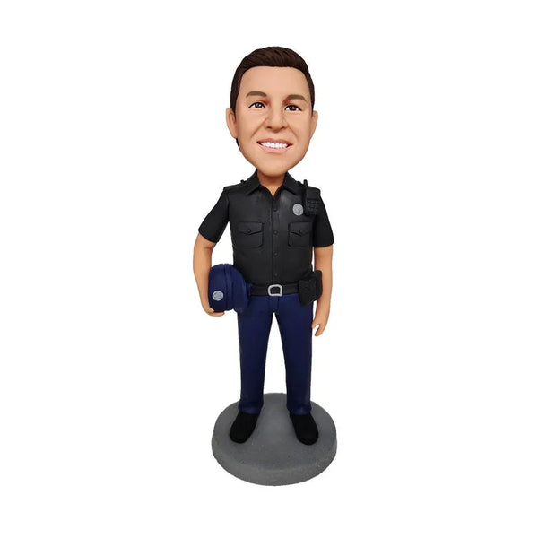 Male Policeman Holding A Police Hat Custom Bobbleheads With Engraved Text -