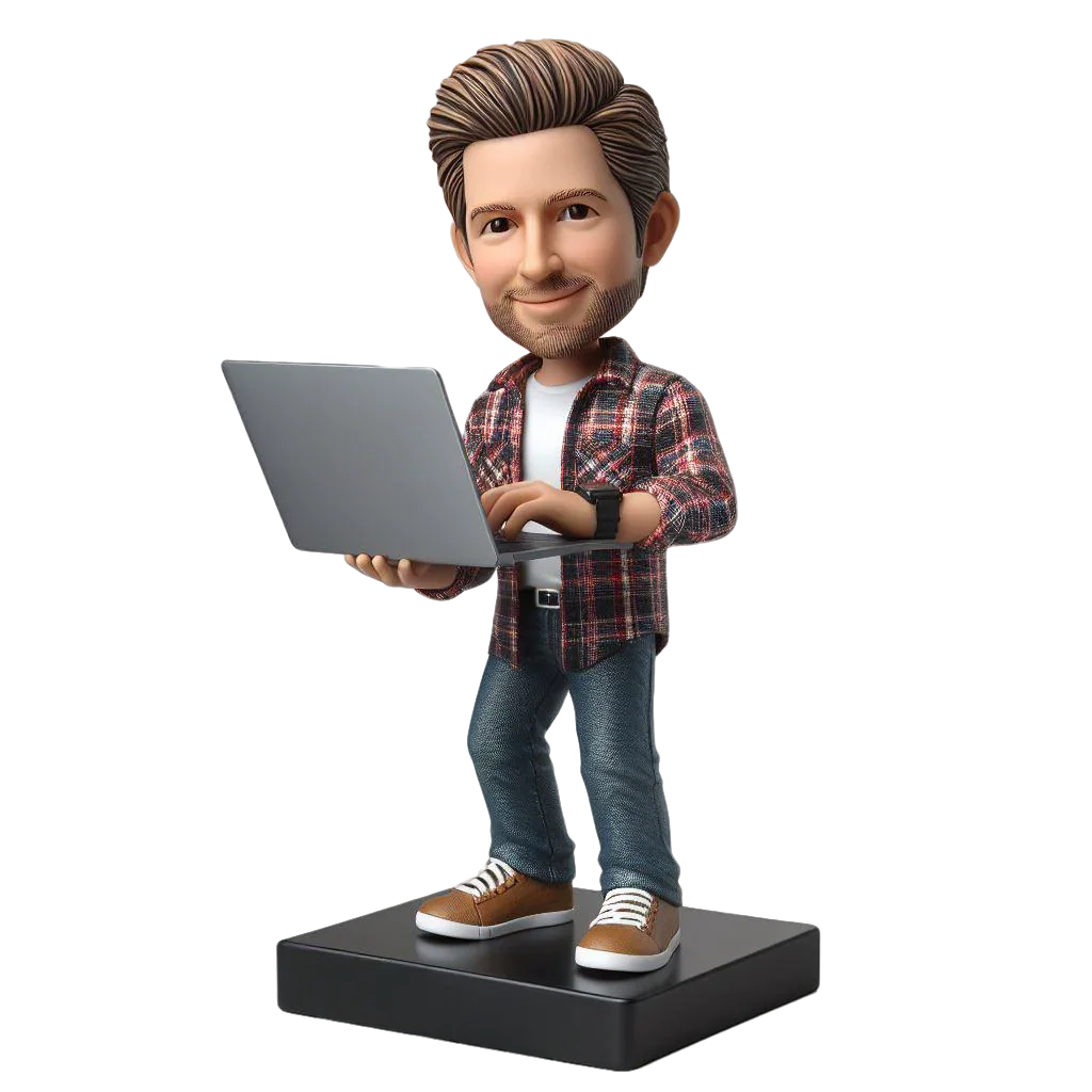 Custom programmer male wearing plaid shirt bobblehead with engraved text