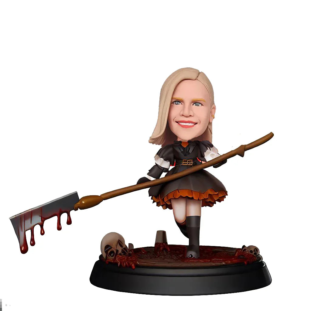 Halloween female zombie custom bobblehead doll with scythe, engraved text
