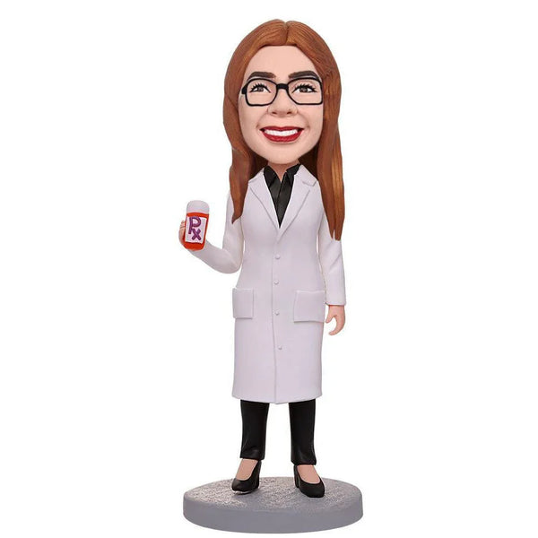 Female Laboratory Worker Custom Bobbleheads With Engraved Text