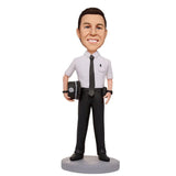 Male Policeman Holding A Police Hat Custom Bobbleheads With Engraved Text