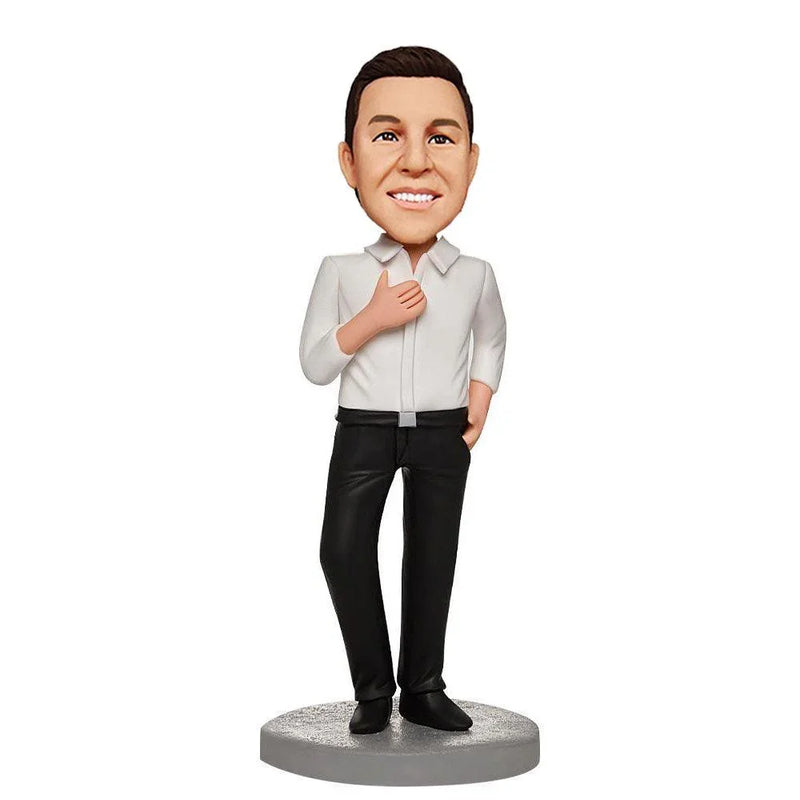 Custom Business Male Wearing A White Shirt Bobbleheads With Engraved Text