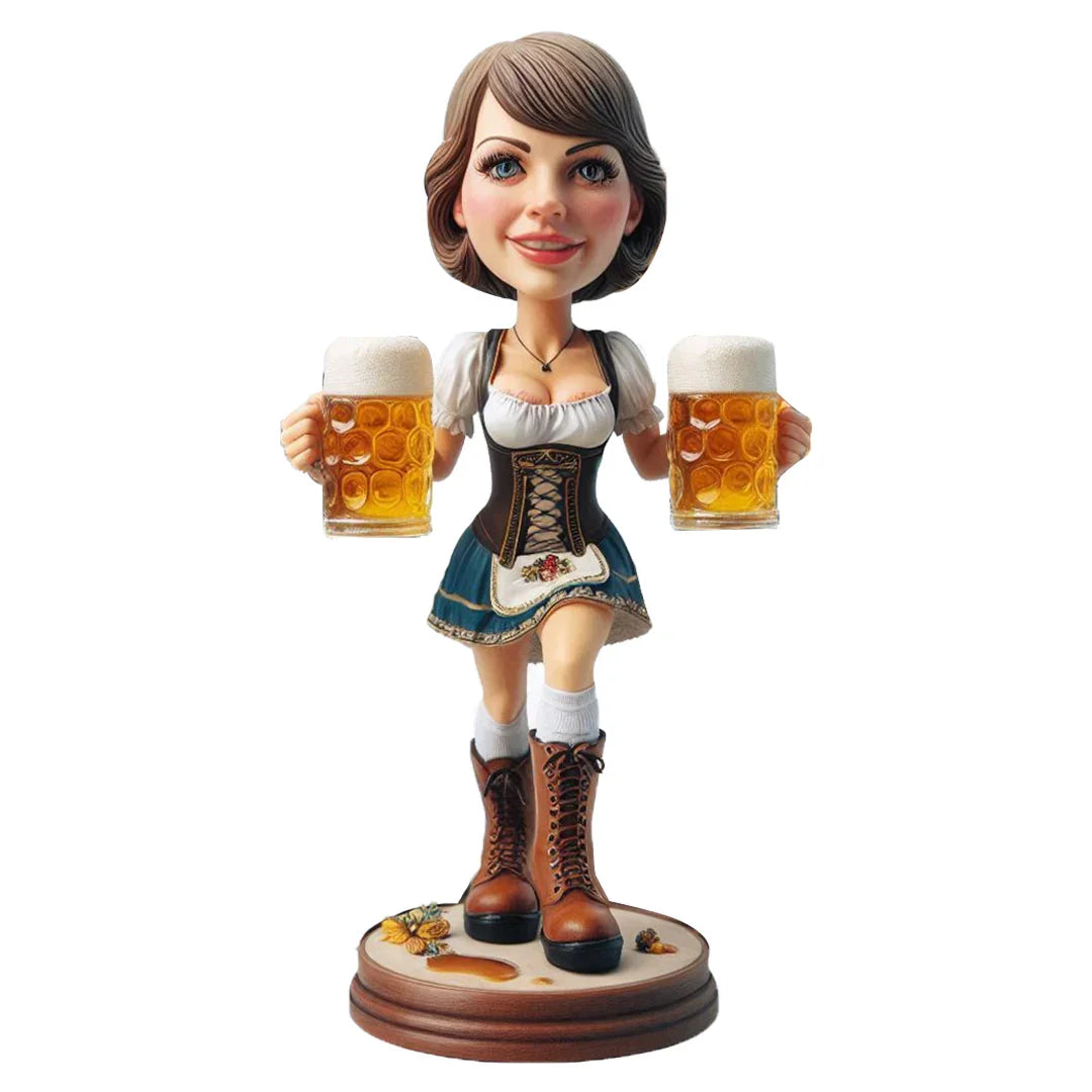 Customized Oktoberfest Beautiful Lady Raising 2 Beers Bobblehead Doll Handmade Souvenir